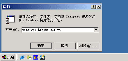 | 解析完域名后,由于本站的DNS管理系統(tǒng)具備實(shí)時生效功能,因此您可以通過ping您的域名來檢驗(yàn)是否生效。 現(xiàn)以域名www.hzhost.com為例 1> 請點(diǎn)擊屏幕左下角的"開始",然后點(diǎn)擊"運(yùn)行",如下圖所示: 2> 在打開后面輸入"ping www.hzhost.com -t",如下圖所示: 3> 此時將彈出一個DOS窗口,如果出現(xiàn)的是下圖,下圖中能看到IP地址:218.5.76.177,那么表示解析是生效了。 ![]() |