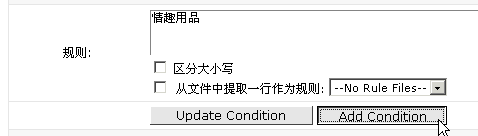 4> 選擇好范圍后,進行制定規則。填入"性用品"并點"Add Condition"